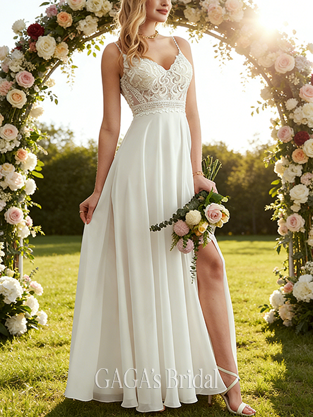 - Timeless V-Neck A-Line Chiffon Gown