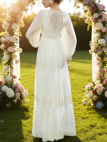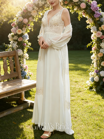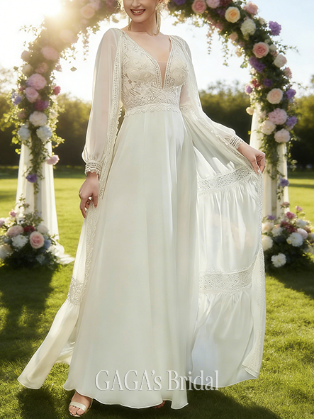 - V-Neck A-Line Wedding Dress with Pleated Detail
