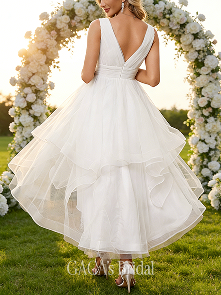- V-Neck A-Line Lace Chiffon Wedding Dress