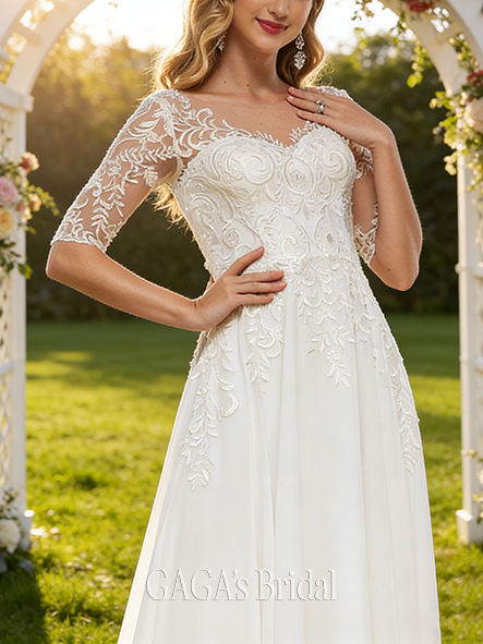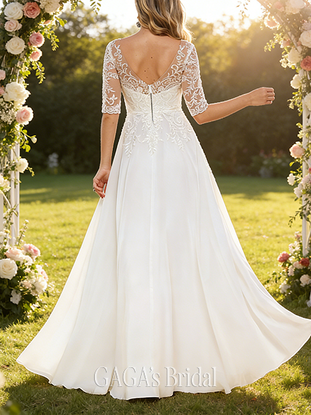- Cowl Neck A-Line Wedding Dress with Ruffle Detail