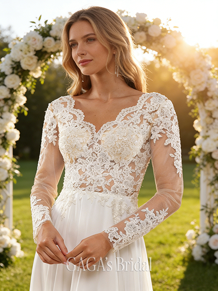 - V-Neck A-Line Wedding Dress with Ruched Detail