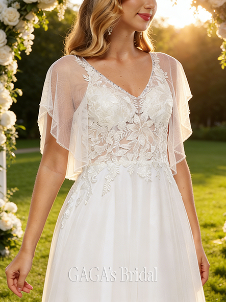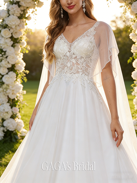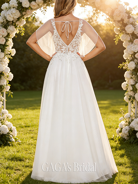 - Cowl Neck A-Line Chiffon Wedding Dress