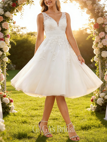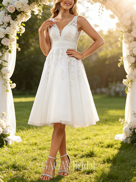 - V-Neck A-Line Lace Chiffon Wedding Dress
