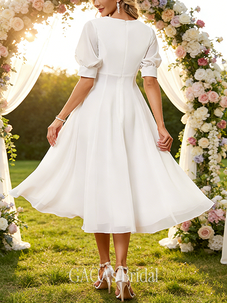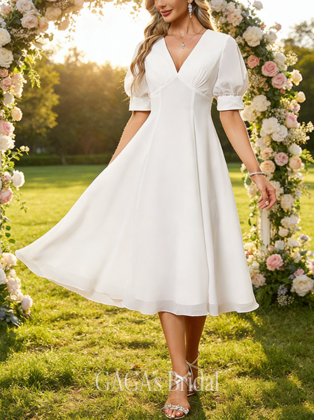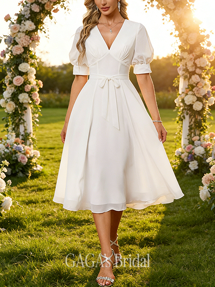 - V-Neck A-Line Wedding Dress with Embroidery