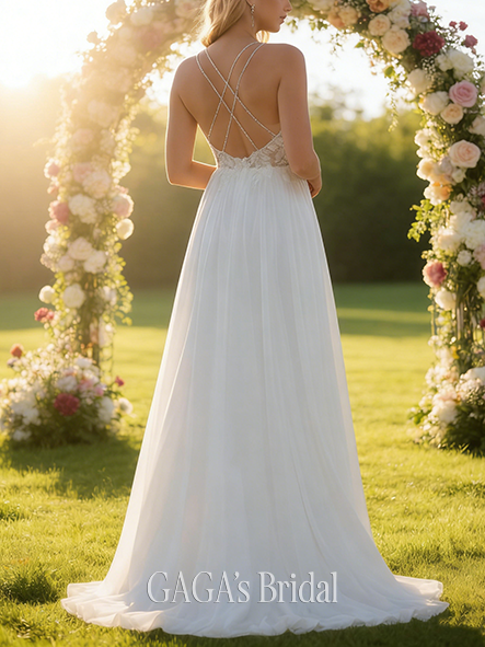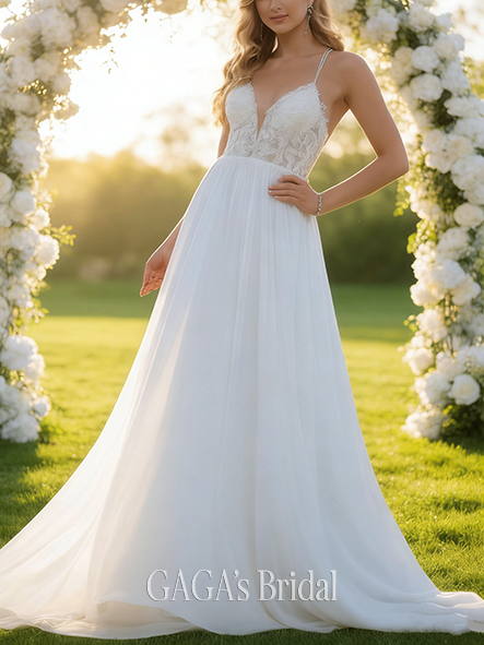 - Graceful V-Neck A-Line Lace Chiffon Gown