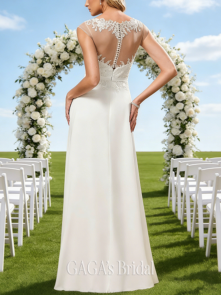 - Off-the-Shoulder A-Line Lace Chiffon Gown
