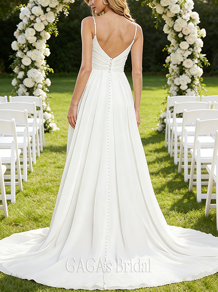 - V-Neck A-Line Lace Chiffon Wedding Dress