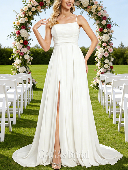 - Square Neck A-Line Wedding Dress with Embroidered Flowers