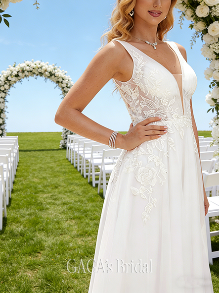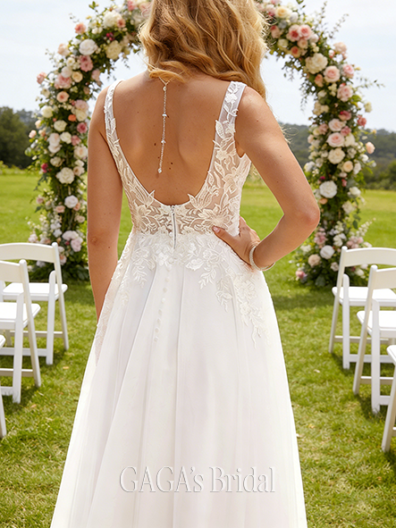 - Ethereal V-Neck A-Line Tulle Lace Gown