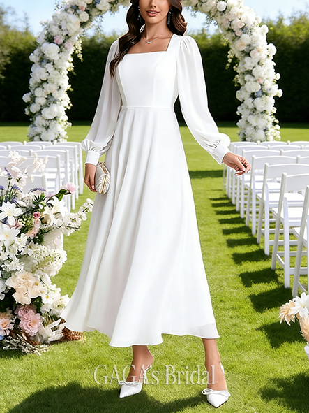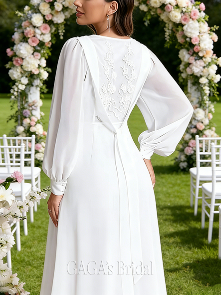 - Cowl Neck A-Line Chiffon Wedding Dress
