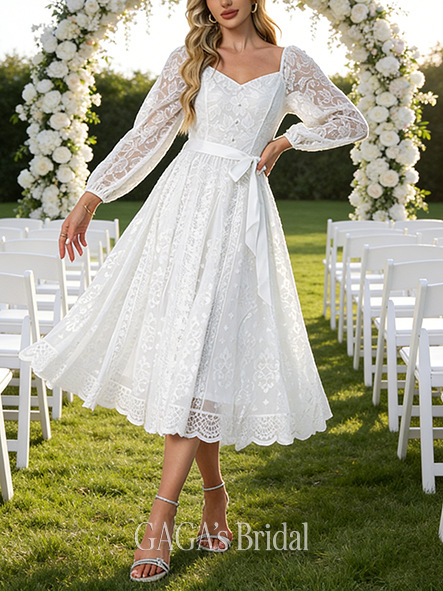 - Boat Neck A-Line Wedding Dress with Embroidery