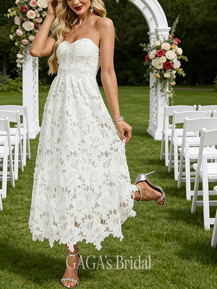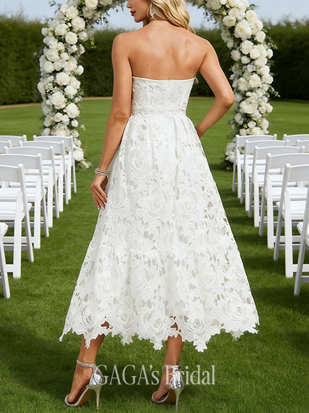 - V-Neck A-Line Lace Chiffon Wedding Dress
