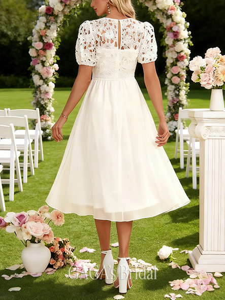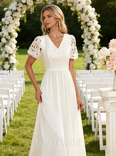 - V-Neck A-Line Lace Chiffon Wedding Dress