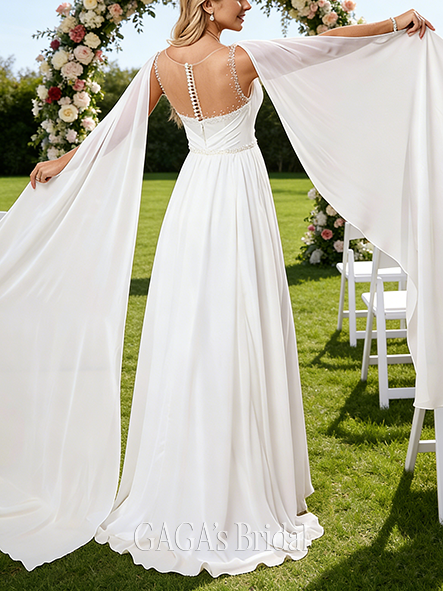 - V-Neck A-Line Lace Chiffon Wedding Dress