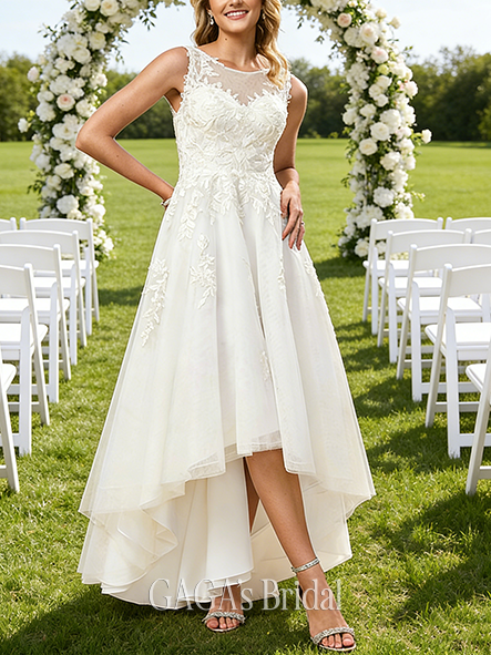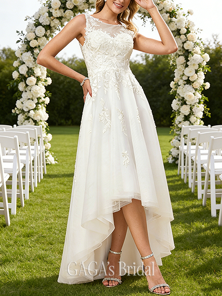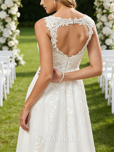 - V-Neck A-Line Chiffon Lace Wedding Dress