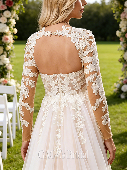 - V-Neck A-Line Tulle Lace Wedding Dress