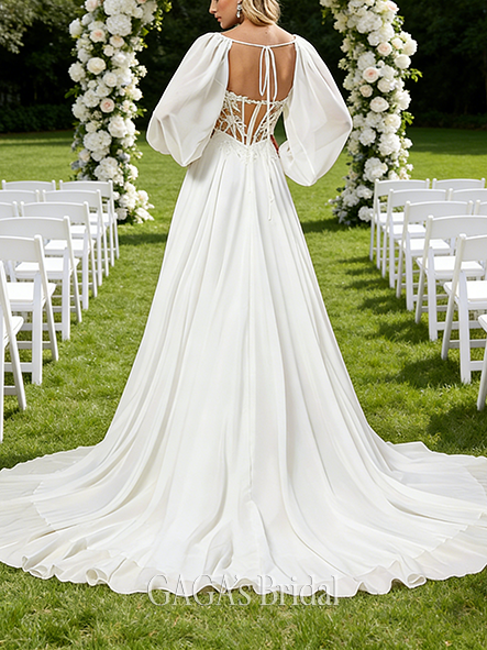 - V-Neck A-Line Lace Tulle Wedding Dress