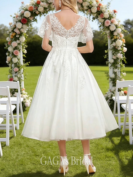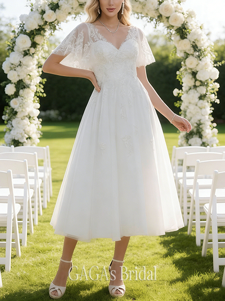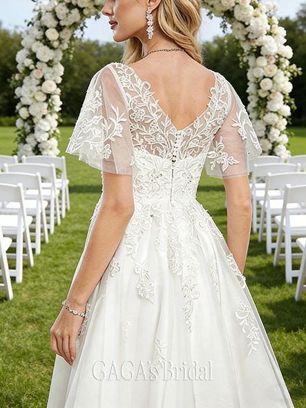 - V-Neck A-Line Wedding Dress with Sequins and Sweep Train