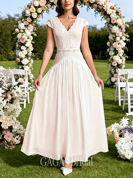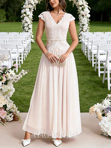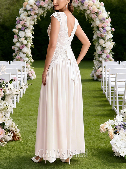 - Ethereal V-Neck A-Line Lace Chiffon Gown