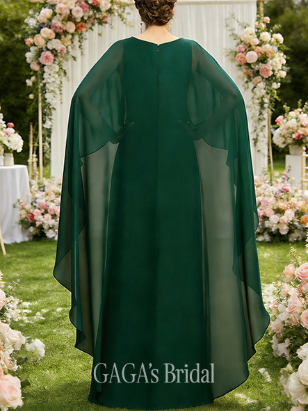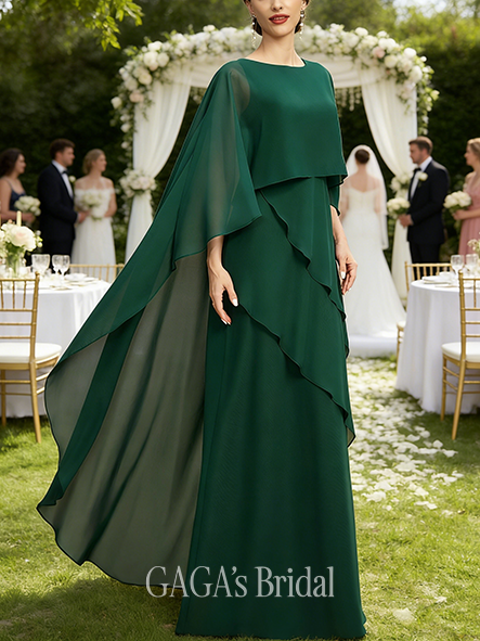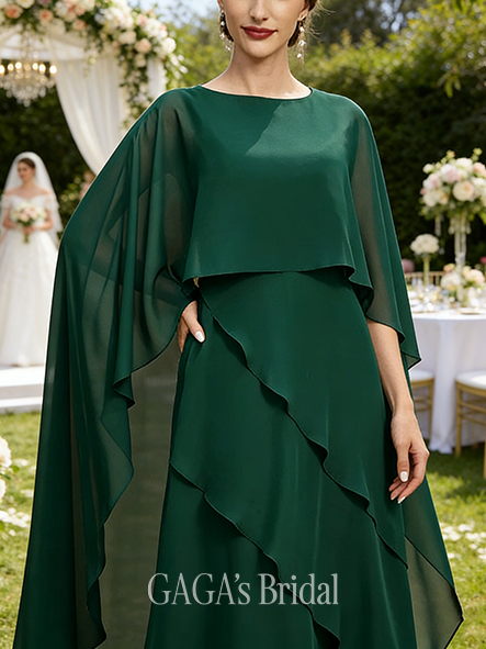 • Wedding Guest A-line Refined Scoop Floor-Length Chiffon Mother of the Bride Dress With Cape 3D Floral